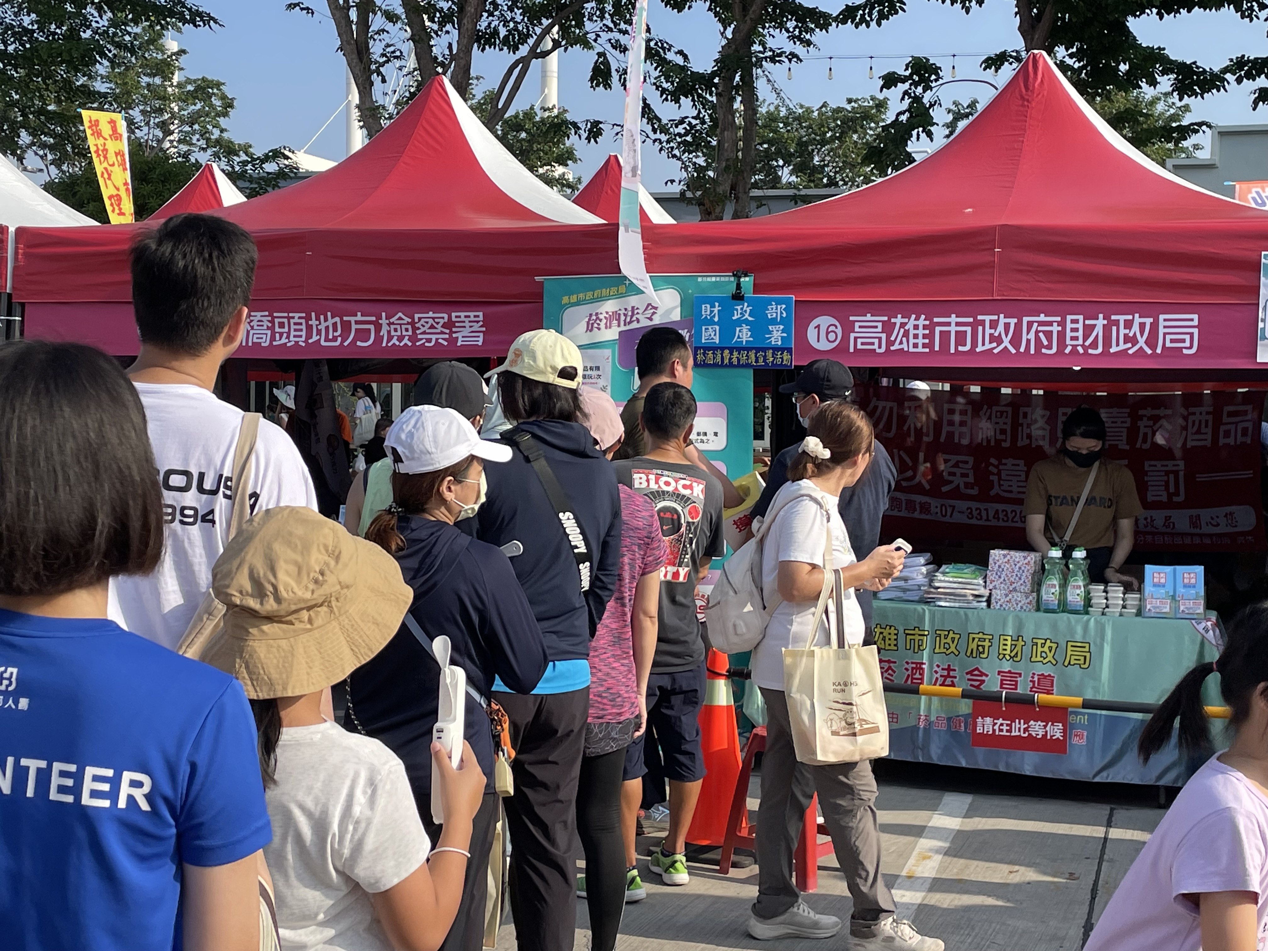 114年10月26日結合財政部高雄國稅局舉辦之「財政部114年度統一發票盃路跑活動」辦理菸酒法令宣導,活動會場跑者們揮散青春的汗水,菸酒宣導小隊也不能輸!拿出滿滿的熱情和實用小禮物向民眾宣導法規,提醒民眾勿購買來路不明菸酒,一同守護大家的健康。